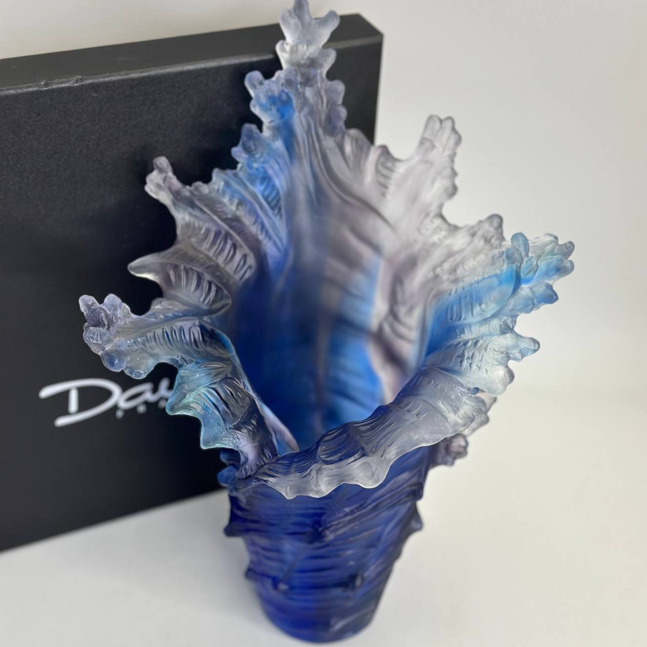 Изысканная ваза DAUM PL-68626 – это настоящее произведение искусства, которое станет ярким акцентом в любом интерьере. Эта элегантная ваза, выполненная из высококачественного хрусталя, сочетает в себе традиционные техники и современный дизайн. Градиент синего цвета, переходящий в нежный лазурный, создает эффект глубины и придает изделию неповторимый шарм. Форма, напоминающая морскую волну, привносит в пространство ощущение свежести и динамики.