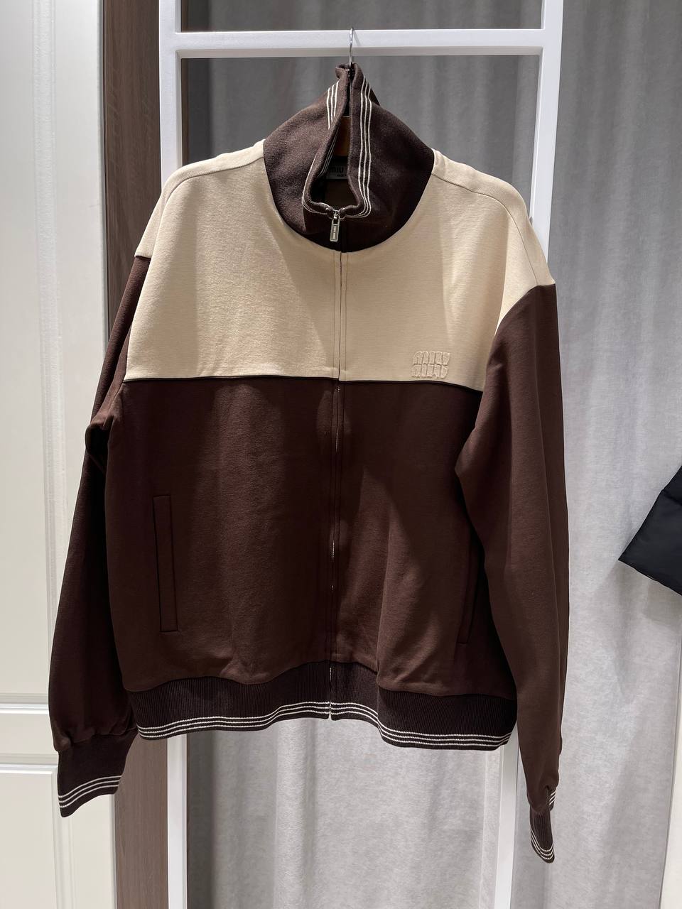 Представляем вашему вниманию стильный бомбер Miu Miu PL-65780, который станет изюминкой вашего гардероба. Эта элегантная куртка выполнена в приятной цветовой гамме, сочетающей кремовый и шоколадный оттенки, что придает ей изысканность и универсальность. Дизайн в стиле колор-блок добавляет модели современный акцент. Бомбер застегивается на молнию и имеет удобные карманы, что делает его не только красивым, но и практичным. Он идеально подойдет для создания непринужденных, но модных образов в стиле casual или спорт-шик.