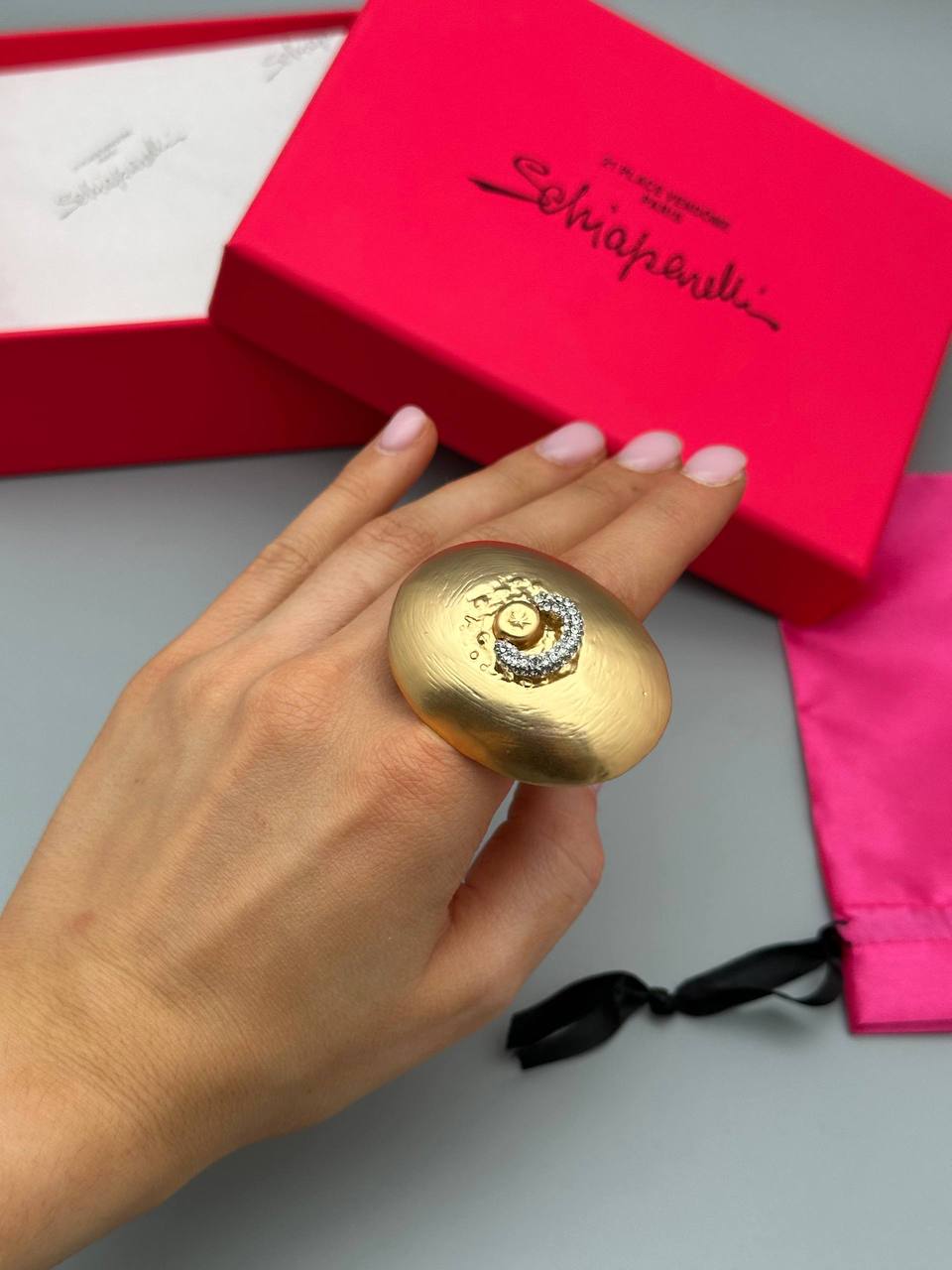 Представляем вашему вниманию эффектное кольцо Schiaparelli PL-67297, которое станет ярким акцентом в вашем образе. Это украшение выполнено в золотом цвете и отличается своим необычным дизайном. Массивное овальное основание с матовой текстурой притягивает взгляд, а инкрустация сверкающими кристаллами в центре добавляет изделию нотку роскоши и гламура.