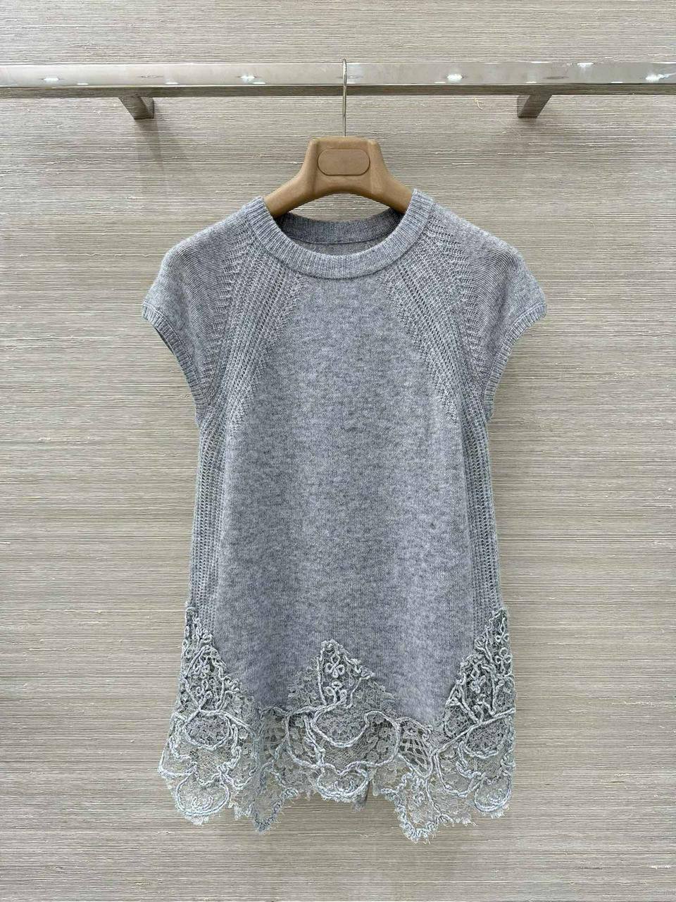 Представляем вашему вниманию элегантный женский костюм Ermanno Scervino PL-68494, который станет прекрасным дополнением вашего гардероба. Этот стильный комплект, выполненный в нежном сером цвете, сочетает в себе комфорт и изысканность. Костюм состоит из топа с короткими рукавами и широких брюк. Особенностью топа является кружевная отделка по низу, добавляющая образу женственности и романтичности.