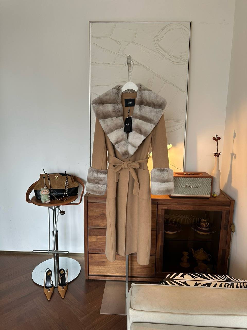 Представляем вашему вниманию изысканное пальто Fendi PL-68899, которое станет воплощением элегантности в вашем гардеробе. Это стильное изделие выполнено в классическом бежевом цвете, что делает его универсальным дополнением к любому образу. Роскошная отделка из натурального меха на воротнике и манжетах придает модели особый шарм и изысканность. Данное женское пальто идеально подойдет для создания элегантных и женственных образов. Благодаря своему крою и поясу, подчеркивающему талию, оно выгодно подчеркнет достоинства фигуры.