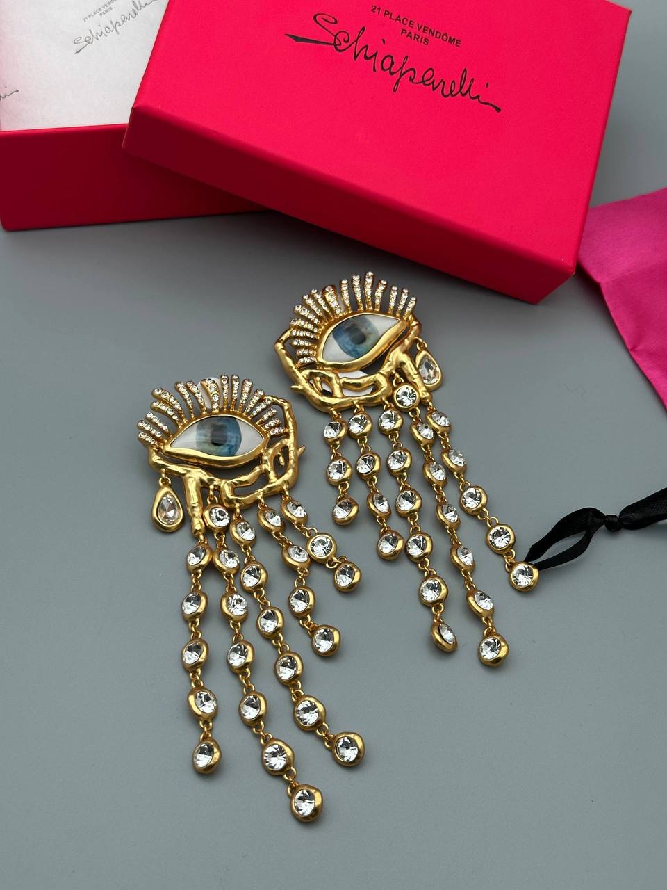 Представляем вашему вниманию эксклюзивные серьги Schiaparelli PL-67292, которые станут ярким акцентом в вашем образе. Эти эффектные украшения выполнены в золотом цвете и отличаются оригинальным дизайном в виде глаза, окруженного сверкающими кристаллами. Подвески из прозрачных камней добавляют серьгам динамику и изысканность. Эти серьги идеально подойдут для создания запоминающегося вечернего или коктейльного образа, а также добавят нотку экстравагантности в повседневный наряд. Они прекрасно сочетаются с платьями, блузками и топами различных цветов и фактур, позволяя вам экспериментировать со стилем и выражать свою индивидуальность.