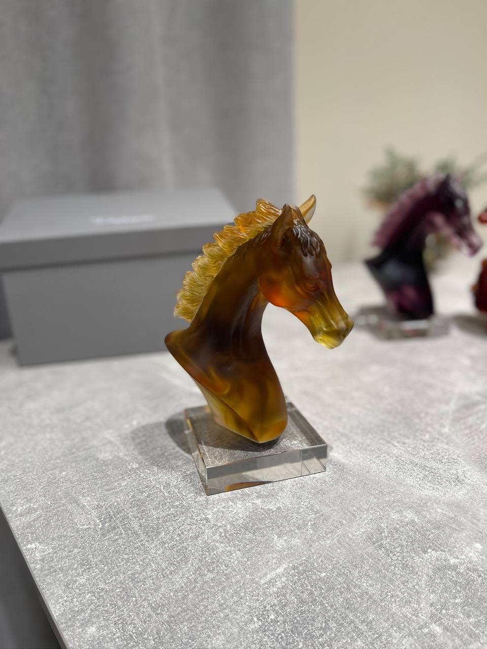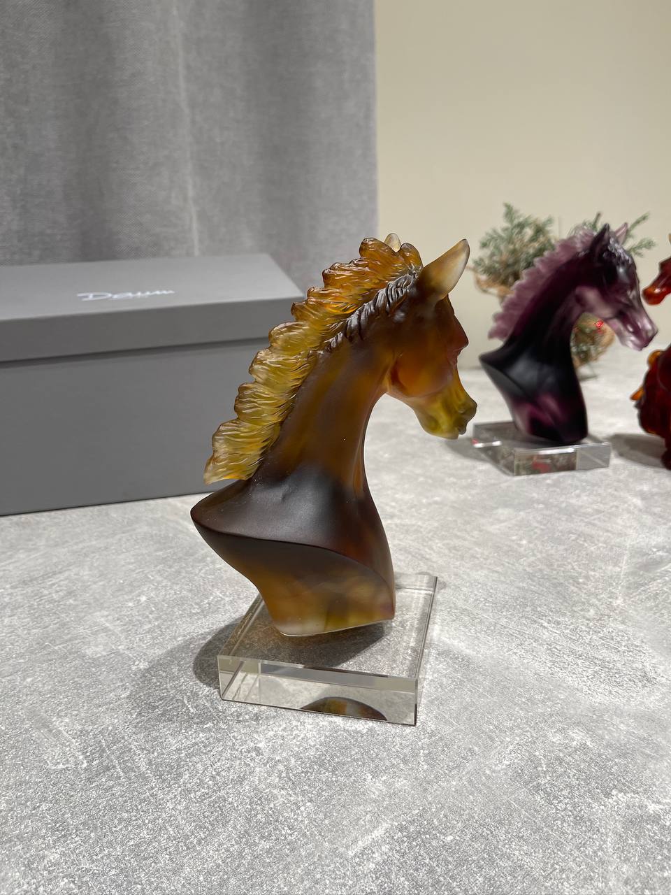 Изысканная статуэтка DAUM PL-66731 – это воплощение грации и силы в стекле. Эта прекрасная скульптура изображает голову лошади, выполненную в янтарных и коричневых тонах, создающих эффект глубины и реалистичности. Грива лошади, выполненная в более светлом оттенке, добавляет динамики и живости образу. Подставка из прозрачного стекла подчеркивает элегантность и современный стиль изделия.