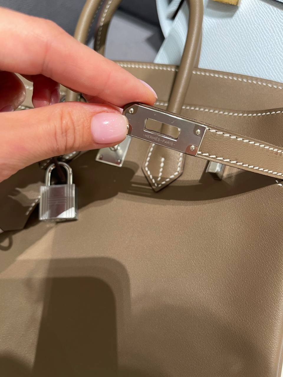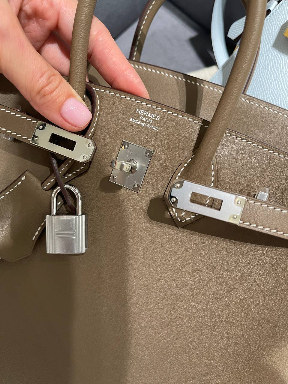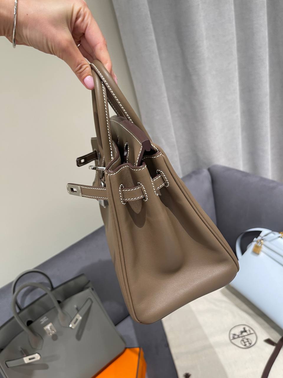 А это значит, что качество, размер стежков просто на высоте. Стежки «елочкой»-одна из отличительных черт изделий модного дома Hermes.