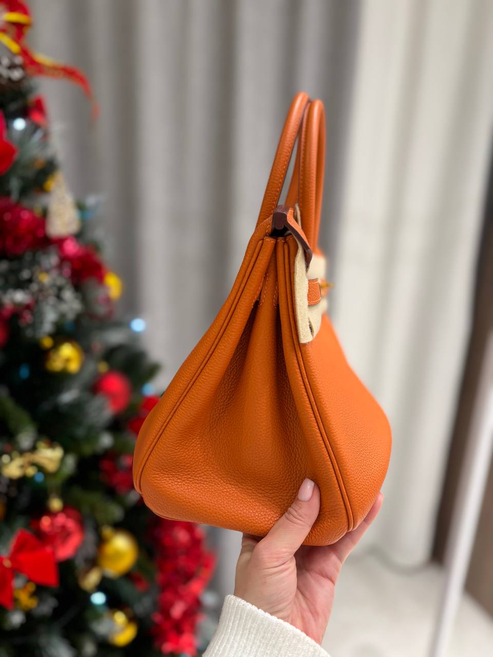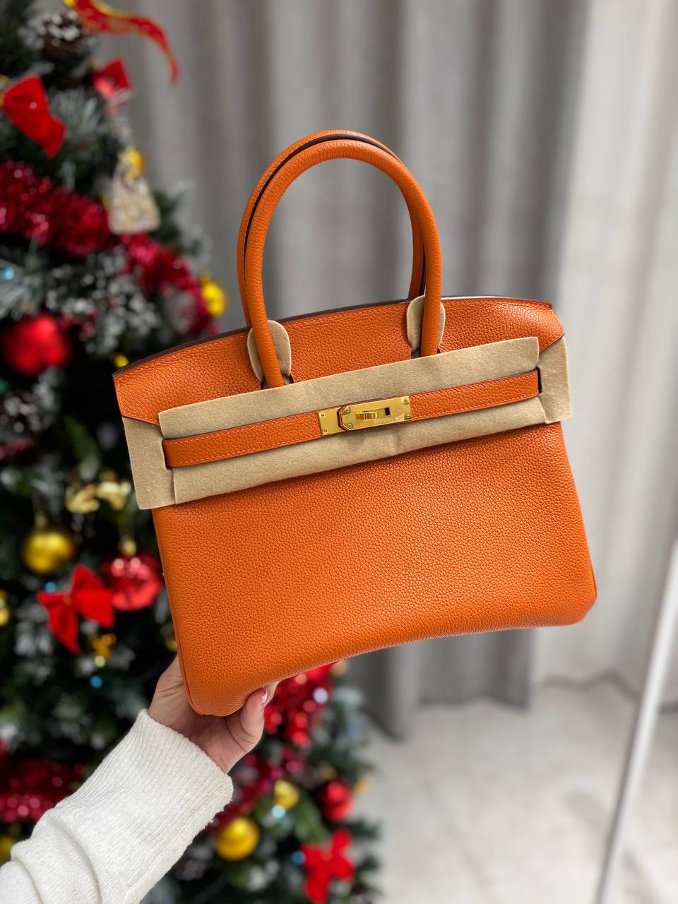 Упаковка бутика Hermes: Фирменная коробка, пыльник, лента, замочек с двумя ключиками с серииным номером.